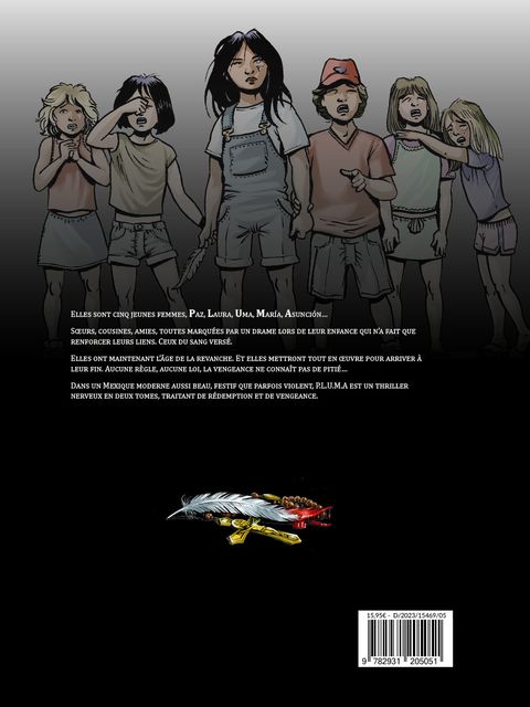 Elles sont cinq jeunes femmes, Paz, Laura, Uma, María, Asunción... Soeurs, cousines, amies, toutes marquées par un drame lors de leur enfance qui n'a fait que renforcer leurs liens. Ceux du sang versé. Elles ont maintenant l'âge de la revanche. Et elles mettront tout en oeuvre pour arriver à leur fin. Aucune règle, aucune loi, la vengeance ne connaît pas de pitié... Dans un Mexique moderne aussi beau, festif que parfois violent, P.L.U.M.A est un thriller nerveux en deux tomes, traitant de rédemption et de vengeance.