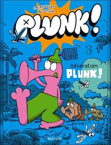 L'absurde est transgénérationnel Spaf, Kwek, klab. Plunk ! C'est dans un fracas incohérent que Plunk et son univers surréaliste nous reviennent ! Ce petit personnage rose au drôle de chapeau vert nous rappelle, à chaque nouveau gag, la définition du mot "absurde". Que ce soit en vivant sur son île ou simplement en marchant dans la rue, Plunk ne laisse aucune certitude au lecteur. Enfin si, une seule. celle d'être confronté à nouveau à un ovni "bédéesque", qui page après page, nous fait réfléchir, mais aussi toujours rire ! Car tout muet que soit Plunk, il n'en est pas moins un communicateur hors pair sur le monde, notre monde ! En ces temps de morosité, rien de tel que de regoûter à l'effet Plunk pour se détacher de cette réalité dont lui se joue allégrement.