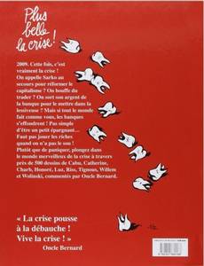 PLUS BELLE LA CRISE L'année qui vient de s'écouler a vu éclater la plus grande crise financière que le monde ait connue depuis près d'un siècle. Les emplois plongent, les banques font faillite, la récession commence. Les Etats-Unis virent Bush et élisent Obama, leur premier président noir. Et pendant ce temps-là... Les Antilles se rebellent. Derrick et suur Emmanuelle meurent. Sarkozy fête ses deux ans au pouvoir et fait condamner un prof de philo pour avoir osé crier " Sarkozy je te vois ! ". Carla Bruni devient première dame de France et sort un disque dans la foulée, " comme si de rien n'était ".... Rachida Dati accouche d'une fille sans père. Au PS, Ségolène Royal et Martine Aubry se crêpent le chignon. Revivez l'année Charlie revisitée par les plus grands dessinateurs de presse ! Plus de 900 dessins réunis dans un grand format collector
