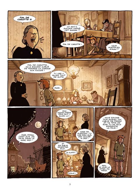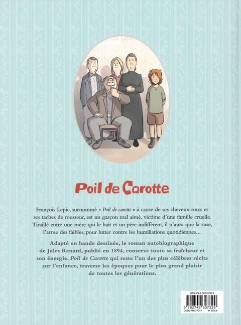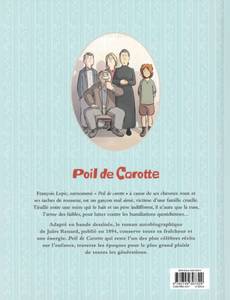 François est le petit dernier de la famille Lepic. Mais tout le monde l’appelle « Poil de carotte » à cause de ses cheveux roux et de ses taches de rousseur. Mal-aimé, il subit sans arrêt les reproches de sa mère et l’indifférence de son père et de ses frères et sœurs. On lui confie toujours les tâches les plus ingrates : aller fermer la porte du poulailler en pleine nuit ou encore achever les perdrix que son père a chassées. Pour lutter contre les humiliations du quotidien et braver le monde injuste des adultes, notre brave Poil de carotte va devoir se montrer rusé. Christophe Lemoine s’allie au trait léger et sensible de Cécile pour adapter en bande dessinée le chef-d’œuvre de Jules Renard, l’occasion pour les plus jeunes de découvrir ce classique de la littérature pétri d’humanité.