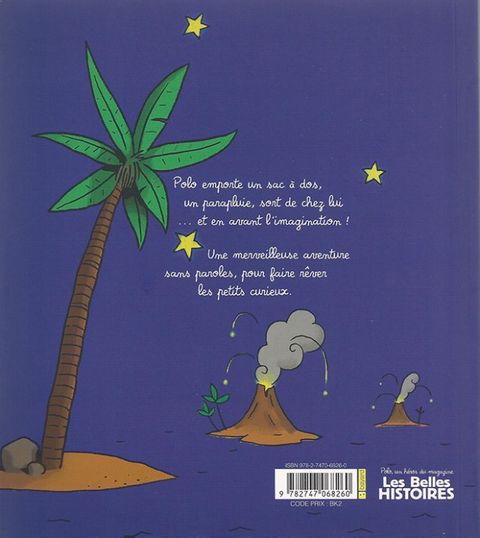 Polo est un aventurier, doux et rêveur... Une histoire sans paroles, pleine de poésie , de tendresse et de surprises pour s'endormir en rêvant. Avec cet album, les plus petits se laisseront emporter au rythme de leur imagination. Polo emporte un sac à dos, un parapluie, il sort de chez lui et part en voyage... Au cours de cette aventure pleine de charme, Polo se laisse guider par la curiosité, l'imagination et les rencontres. Il voyage à bord d'un nuage, d'un bateau, d'un avion, d'une mongolfière, d'un sous-marin, d'une fusée... Il visite le fond des océans, les îles volcaniques, l'intérieur des icebergs, la lune... Polo fait ainsi le tour de la terre, avant de rentrer à la maison, riche d'expériences et de nouvelles amitiés.