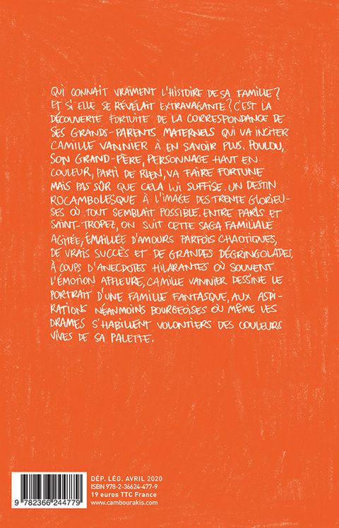 Ce premier roman graphique de Camille Vannier à paraître en France est une fiction autobiographique empreinte d'une folie douce, à l'image du grand-père fantasque dont elle raconte l'histoire: imbroglios en tous genres, succès flamboyants et échecs redoutables, mines d'or inexistantes et nombreuses conquêtes sur fond de Riviera méditerranéenne comme cadre à ses mésaventures rocambolesques. Telle est la vie de Poulou, ce bon vivant en avance sur son temps, un grand-père comme peu en ont eu, racontée par sa petite-fille, dans la Barcelone contemporaine, dotée d'un inimitable sens de l'humour et de la narration. Un récit rocambolesque qui dépasse le cadre particulier d'une famille pour livrer en creux le portrait d'une époque des années 1940 aux années 1980.
