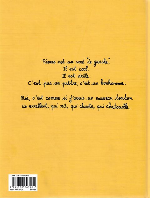 Olivier, élevé dans une ambiance baba cool, est sans histoires et peu farouche. A 12 ans, il part en colonie de vacances où il se lie d'amitié avec Pierre, un curé. Celui-ci lui demande de toucher son corps. Olivier ne sera pas abusé, mais cet événement marquera à jamais son existence... Récit autobiographique d'une enfance trahie et ses conséquences. Prix du public Festival BD d'Angoulême 2007.