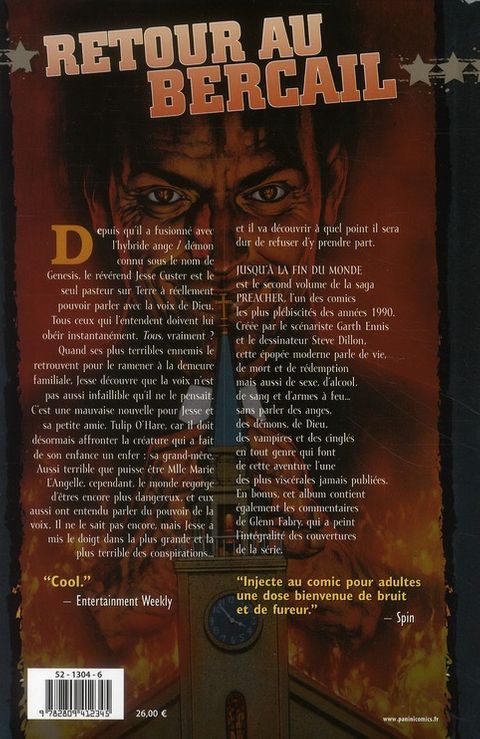 Jesse Custer, le prêcheur investi dun pouvoir divin, revient flanqué de sa caractérielle ex-petite amie, la belle Tulip OHare. Dieu a démissionné, et Jesse compte bien le retrouver et le traîner devant Sa Création pour quil lui présente des excuses publiques ! Dans ce deuxième opus, nous comprendrons enfin pourquoi et comment Jesse et Tulip se sont séparés Un secret qui pourrait avoir de terribles répercussions ! Une saga familiale à ne pourtant pas mettre entre toutes les mains, qui nous éclaire sur le passé de notre héros et fait passer la série à la vitesse supérieure.