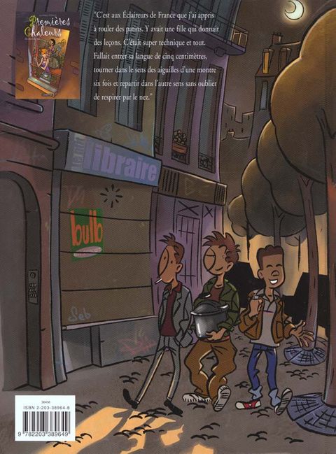 " c'est aux eclaireurs de france que j'ai appris à rouler des patins. Y avait une fille qui donnait des leçons. c'était super technique et tout. fallait entrer sa langue de cinq centimètres, tourner dans le sens des aiguilles d'une montre six fois et repartir dans l'autre sens sans oublier de respirer par le nez. ".
