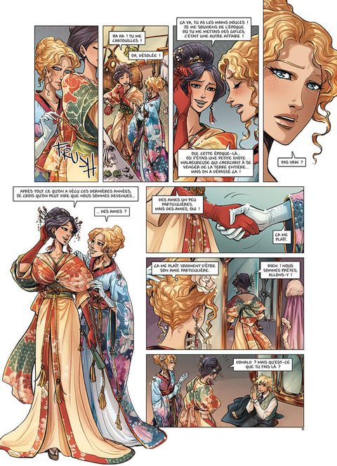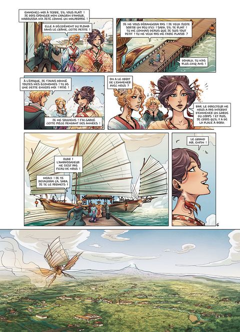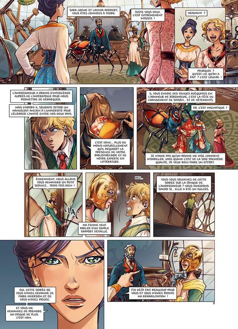 Sara et Lavinia sont arrivées au Japon à bord de l'Université volante. Mais l'Ambassadeur croit Sara responsable d'une entourloupe qui met le Japon en danger. Comme réparation, il lui propose un marché. Sara et Lavinia sont contraintes de se jeter à l'eau. Tout ce qu'elles peuvent, c'est compter l'une sur l'autre et se tenir la main... ce qui ne déplaît pas à Lavinia. Pas du tout, même...