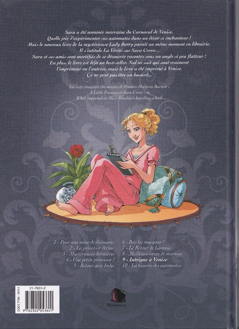 Sara a été nommée marraine du Carnaval de Venise. Quelle joie d'expérimenter ses automates dans un décor si enchanteur ! Mais le nouveau livre de la mystérieuse Lady Berry paraît au même moment en librairie et s'intitule La Vérité sur Sara Crewe ! Sara et ses amis sont mortifiés de se découvrir racontés sous un angle si peu flatteur ! Dès sa sortie, le livre est déjà un best-seller. Nul ne sait qui sont l'imprimeur ou l'auteure, mais le livre a été imprimé à Venise. Ça ne peut pas être un hasard...