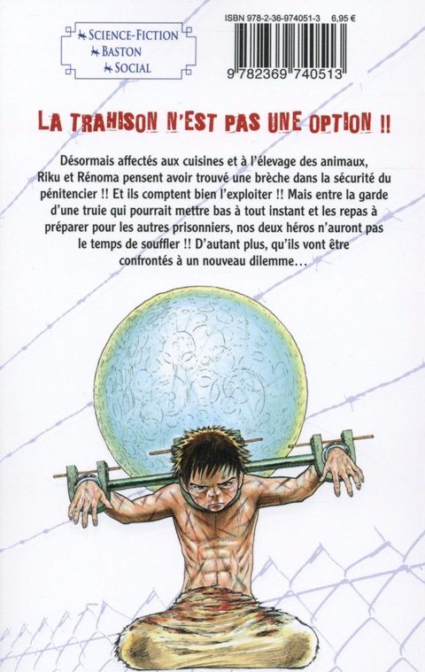 Riku et Rénoma poursuivent leur projet pour s'évader de la prison. Désormais affectés aux cuisines et à l'élevage des animaux, ils pensent avoir détecté une faille dans le système de sécurité pénitencier. Entre la garde d'une truie qui est sur le point de mettre bas et les repas à préparer, les deux protagonistes sont surchargés et commettent une erreur qui risque de leur coûter cher.