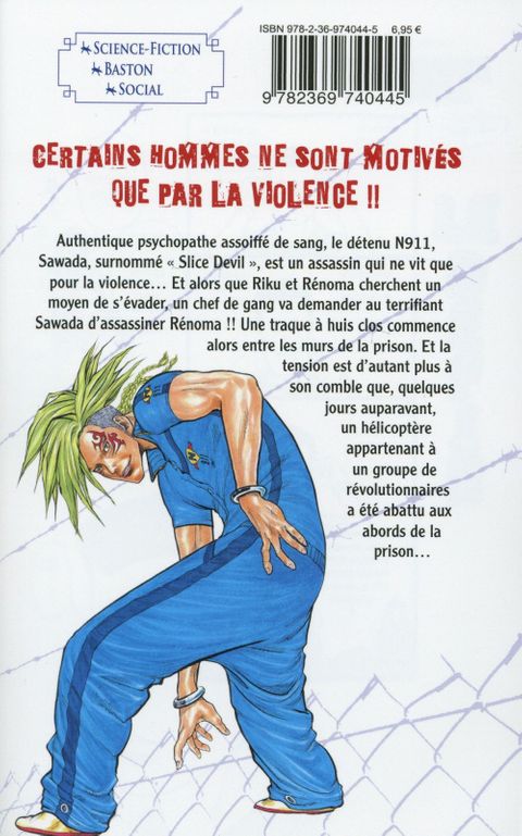 Sawada, surnommé « Slice Devil », le nouveau détenu de la prison, est un authentique psychopathe assoiffé de sang, véritable assassin qui ne vit que pour la violence. À peine arrivé dans le pénitencier de haute sécurité, il va arracher les doigts d'un détenu et trancher la tête d'un gardien !! Et alors que Riku et Rénoma cherche toujours un moyen de s'échapper, un chef de gang va demander au terrifiant Sawada d'assassiner Rénoma !! Une traque en huit clos commence alors entre les murs de la prison !! Et la tension est d'autant plus à son comble, que quelques jours auparavant, un hélicoptère appartenant à un groupe de révolutionnaires, a été abattu aux abords de la prison, alors qu'il tentait de faire évader leur chef. Un homme qui, tout comme Riku, veut faire payer le préfet de police pour ses crimes envers le peuple !!