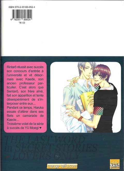 Rintaro et Kaede sont enfin en couple. Mais si le professeur particulier se montre de plus en plus possessif envers son jeune amoureux, ce dernier semble ne pas retourner les sentiments de son tuteur. Eisuke, un ami de Rintaro, en serait-il la cause ? En bonus, une histoire d'amour perdu qui se conclut à l'âge adulte !