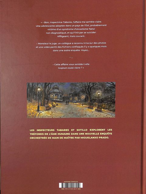 Février 2017, Irina, une adolescente de 15 ans, est retrouvée morte dans son lit. Les autorités concluent à un suicide, et l'affaire semble rapidement classifiée. L'inspectrice Tabares et son adjoint Sotillo sont en charge de l'affaire, mais ils ne sont cependant pas convaincus par cette théorie. Aussi, lorsqu'ils retrouvent dans la tablette de la jeune fille des photos d'elle nue et un lien avec un mystérieux photographe érotique, l'enquête prend soudainement une tournure glaçante. Miguelanxo Prado, après Proies faciles T1, revient avec un nouveau polar social froid et dur, réalisé avec toute la maestria qui le caractérise.