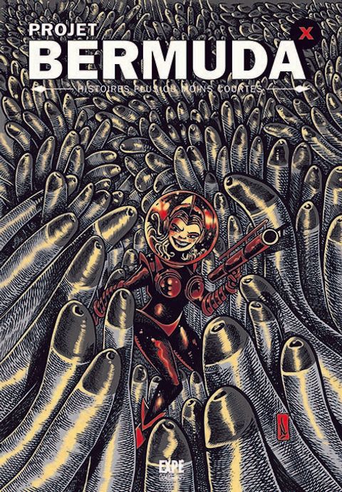 Depuis 2000, à Lyon, les 3èmes jeudis du mois, la libraire Expérience organise, des rencontres en nocturne entre auteurs et éditeurs. C'est l'occasion pour les lecteurs de faire dédicacer leurs albums, pour les jeunes auteurs régionaux de se faire connaître et pour les éditeurs de découvrir de nouveaux talents. C'est là, au fil de ces soirées qu'est née l'envie d'éditer le Projet Bermuda, un recueil de nouvelles originales en bandes dessinées qui permettrait à ces auteurs, sans autre contrainte que la qualité, de présenter divers aspects de leur travail, de tester de nouvelles techniques tout en prenant part à un grand book collectif. Depuis la parution du premier tome, en 2007, notre objectif est rempli : les lecteurs ont appréciés, les jeunes talents ont connu la vie de stars lors d'un des seuls festivals mono-livre du monde et les éditeurs, recevant gracieusement Le Projet Bermuda, ont pu signer des contrats. Depuis l'année dernière, le Bermuda est devenu annuel, comme tout pavé estival qui se respecte. Ce gros recueil de 320 pages d'histoires plus ou moins courtes est réalisé par la crème des auteurs lyonnais : AUREN, G. BEULLIER, S. BILGER, B. BLASCO, S. BOURNEL-BOSSON, B. BREROT, S. CARUSO, A. CHARRETON, A. CHOUETTE, CLEM, COURTY, D. COMBET, EFIX, ENEF, M. FORICHON, S. GALLET, A. GODEAU, GREGDIZER, H. HALLE, IGNATIUS, M. JAMIN, T. JOSSE, M. LEWKO, LNA MORANDI, O. LUGE, R. MAROCELLI, M. MINISCHETTI, J. MUNOZ, C. NAGEL, A. NOCERA, E. ORHUN, U. PANICO-MIALON, A. PAULTES, O. PLAZAS, P. RADICE, E. RANK, C. RELAVE, C. RIZZO, A. ROCHER, R. SARFATI, SEM, C. SHUAI, M. VELTEN, VITALIS, Y. PARK. Plus qu'un état sur l'excellente santé de la Bande Dessinée lyonnaise, Le Projet Bermuda se veut un CV collectif illustré puisque vous y trouverez les coordonnées et bi(bli)ographies de chaque auteur. Ex- libris en sérigraphie d'Emré Orhun.