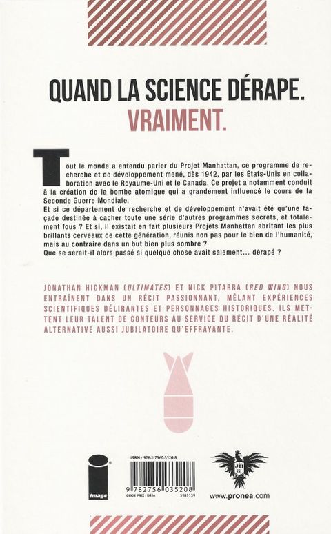 Et si la cellule de recherche et de développement en charge de produire la première bombe atomique était simplement une couverture pour une série de programmes, plus inhabituels, et plus dangereux encore ? Que faire si l'union des esprits les plus brillants d'une génération comme Einstein et Oppenheimer engendrait le chaos et la destruction ? Et si le projet Manhattan avait mal tourné ?