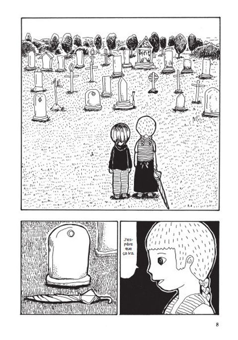 Afin d'éviter un terrible bombardement, un vieillard décide de rapetisser sa ville et de l'enfermer dans une boite à biscuit. Du fond de leur cachette, les habitants miniatures continuent de mener leur existence parsemée d'épisodes particulièrement étranges. Rokudai nous présente ainsi une vieille femme qui a dédié sa vie à l'entretien de crânes de personnes défuntes, un ogre réputé mangeur d'hommes qui élève des pigeons ou encore, un gobelin géant capturé par les habitants de la ville et dont les larmes servent à fabriquer des drogues. Véritable recueil de petits contes surréalistes, Promenades dans la ville de la boîte à biscuit aborde des thèmes sombres avec une certaine fraicheur enfantine.
