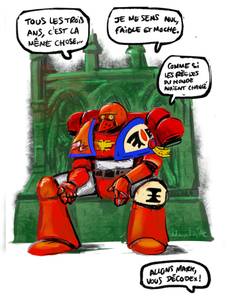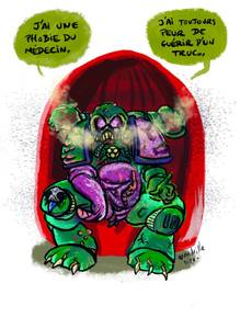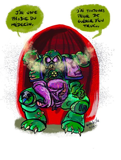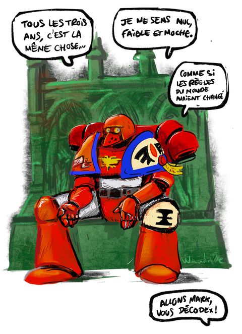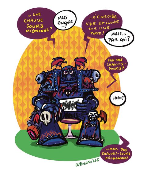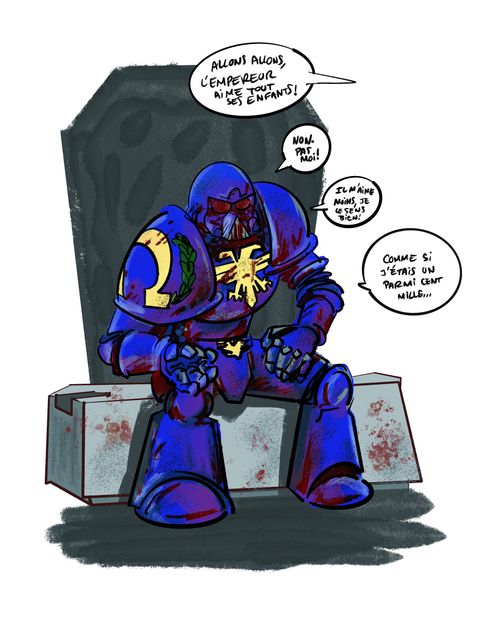 Le stress post-traumatique des gamers C'est pas parce qu'on a la puissance de feu pour réduire en cendres une planète qu'on n'a pas une petite fleur fragile en soi. Les héros de l'espace aussi peuvent aussi lutter contre des démons intérieurs : angoisse de vie pour les nécrons, envie de tuer le père pour les fils de l'empereur, désir de retour à la terre pour les peaux vertes... Une BD qui s'adresse à tous ceux qui ont eu à gérer des conflits au 40e millénaire. Ce treizième tome de « Psychanalyse du héros », entièrement écrit et dessiné par Wandrille, s'adresse aux joueurs de jeux de plateau et aux geeks qui ont peint et collectionné des figurines de marins de l'espace !