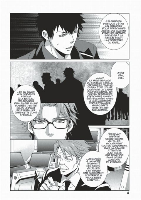 XXIIe siècle, chaque homme est muni d'un « Psycho-Pass », un dispositif qui mesure un coefficient de criminalité. S'il est trop élevé, vous êtes traqués par des Exécuteurs, des criminels potentiels, supervisés par des Inspecteurs. Des morts suspectes se multiplient dans une maison de retraite. L'inspecteur Shinya Kogami est chargé de l'enquête. Un suspect se profile mais une machination macabre semble avoir été mise en place impliquant la zone réservée aux seniors haut-placés dans la société? Dans quoi l'inspecteur va-t-il mettre les pieds ?