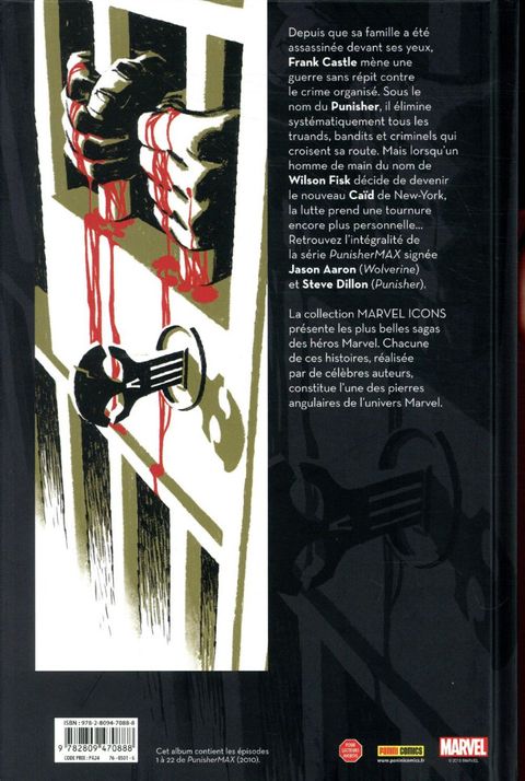 Wilson Fisk est l'homme de main du mafieux Don Rigoletto, mais il a des ambitions bien plus grandes. Il va donc utiliser le Punisher pour parvenir à ses fins et devenir le Caïd. Saura-t-il assouvir sa soif de pouvoir sans faire exploser la bombe à retardement qu'est Frank Castle ? Retrouvez l'intégralité de Punisher MAX de Jason Aaron (Wolverine) et Steve Dillon (Punisher).