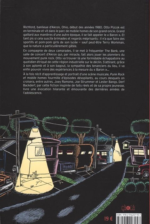Situé au début des années 80, dans la banlieue d'Akron, une ville de la Rust Belt frappée par la crise économique, Punk Rock et mobile-homes est une comédie déjantée dans le milieu de la musique punk, et une version trash des teenage movies de John Hughes. Le personnage principal, Otto Pizcok, est en terminale et vit dans le parc de mobile-homes appartenant à son grand-oncle. Gros balèze féru du Seigneur des Anneaux à la personnalité un peu borderline, il est à la fois admiré et incompris de ses camarades de classe. Grand fan de musique punk, il fréquente assidûment la principale salle de concerts punk d'Akron. Grâce à son impressionnant aplomb, il parvient à se débarrasser de son image de nerd pour devenir le guide/roadie de sommités du Punk telles que Joe Strummer ou les Ramones...