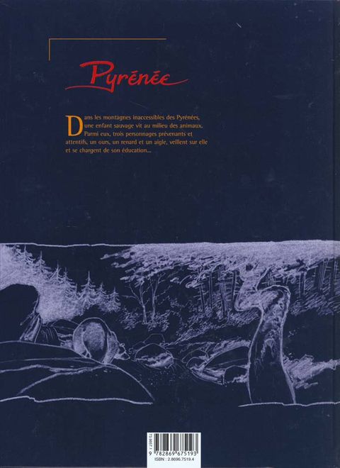 Dans les montagnes inaccessibles des Pyrénées, une enfant sauvage vit au milieu des animaux. Mais elle n'est pas seule : trois personnages prévenants et attentifs veillent sur elle, dont un ours, le patriarche, qui se charge de son éducation et veut la reconduire doucement vers la civilisation.On pense immédiatement à l'oeuvre de Kipling en lisant "Pyrénée", qui en a la poésie et la sensibilité.Son don unique pour le scénario a poussé "Régis Loisel" à écrire cette histoire, dessinée avec beaucoup de sensibilité par "Philippe Sternis".