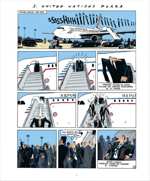 Excellent second tome de cette série au sein du cabinet du ministre des affaires étrangères qui se voit déjà ailleurs et qui tente de se construire une stature internationale à coup d'éléments de langage choisis avec plus gravité que leur portée réelle. Le trait de Blain traduit très bien le personnage (...) Voir le commentaire