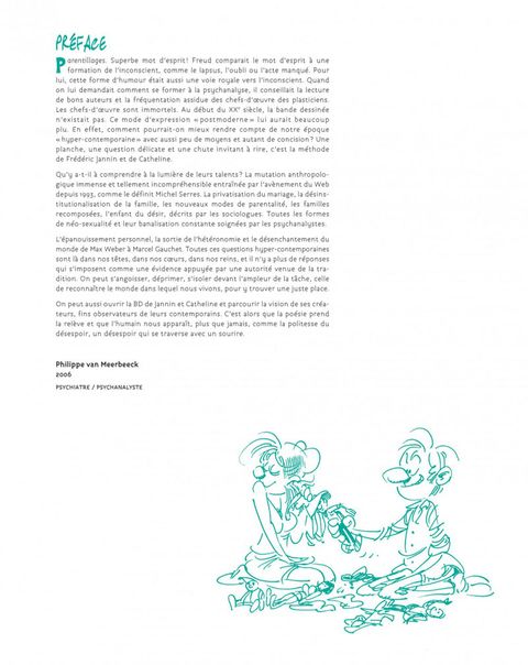 Une suite cocasse de portraits de familles souvent recomposées dans lesquels tous les trentenaires et quarantenaires, tout comme leurs enfants, se reconnaîtront. La génération de « Germain et Nous... » observée vingt après par le regard gentiment caustique de Frédéric Jannin.