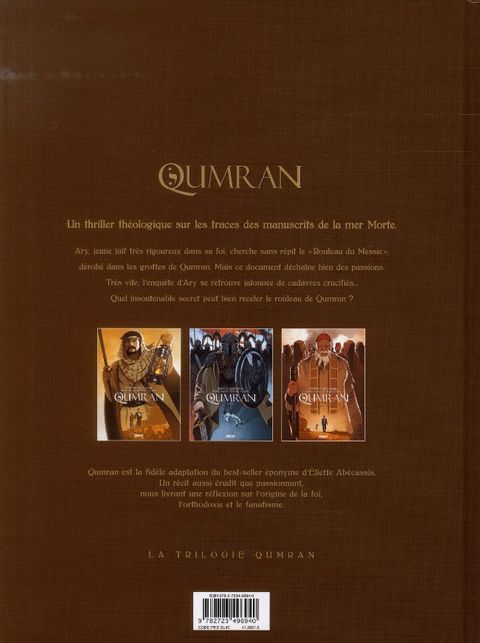 Les fameux manuscrits de la Mer Morte, conservés depuis des siècles au fond d'une grotte de Qumran, ont été découverts par un bédouin il y a une cinquantaine d'années. Certains ont été perdus, ou plutôt volés... Notamment celui appelé « le rouleau du messie », dont on sait qu'il parle de Jésus de façon explicite et dangereuse pour le christianisme... Ary, jeune juif paléographe, et son ami Alexandre, archéologue, sont mandatés par le père d'Ary, lui-même archéologue israélien, pour retrouver les manuscrits perdus de Qumran. Ils se lancent dans une quête aussi initiatrice que périlleuse et sont dès lors en constant danger de mort. Car ceux qui s'intéressent de près aux manuscrits de la Mer Morte sont bien souvent retrouvés crucifiés...