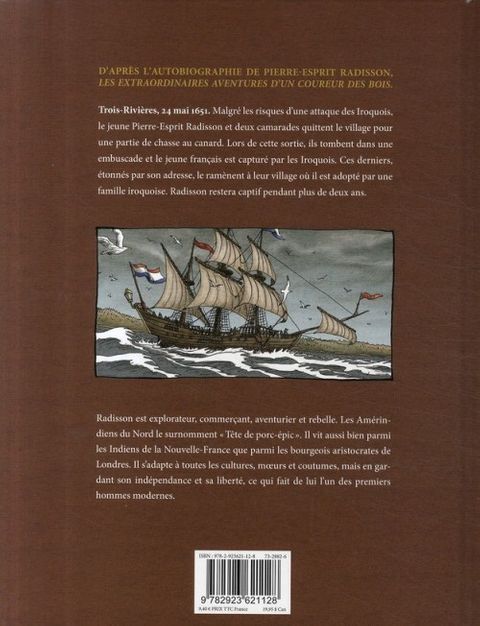 Trois-Rivières, 24 mai 1651. Malgré les risques d'une attaque des Iroquois, le jeune Pierre- Esprit Radisson et deux camarades quittent le village pour une partie de chasse au canard. Lors de cette sortie, ils tombent dans une embuscade et le jeune français est capturé par les Iroquois. Ces derniers, étonnés par son adresse, le ramènent à leur village où il est adopté par une famille iroquoise. Radisson restera captif pendant plus de deux ans. Radisson est explorateur, commerçant, aventurier et rebelle. Les Amérindiens du Nord le surnomment "Tête de porc-épic ". Il vit aussi bien parmi les Indiens de la Nouvelle-France que parmi les bourgeois aristocrates de Londres. Il s'adapte à toutes les cultures, moeurs et coutumes, mais en gardant son indépendance et sa liberté, ce qui fait de lui l'un des premiers hommes modernes.