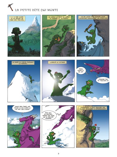 Le grand retour d’un petit dragon pas comme les autresRaghnarok, sa mère et sa grand-mère sont les seuls dragons de la région. Leur territoire s'étend jusqu'aux montagnes du Nord et toute la forêt leur appartient, ils en sont les gardiens. Ils sont les protecteurs des elfes, les esprits de la forêt... Jusque-là tout va bien, on se croirait dans une bonne BD d'heroic fantasy bien classique avec ce qu'il faut de monstres et d'aventures... Eh non ! Tout faux ! Raghnarok, c'est plutôt « Shrek » version petit dragon. Il est copain avec Najette, une petite fée tendance Lara Croft, et Roxane, une petite humaine qui rêve d'être une grande guerrière et se prend des gamelles chaque fois qu'il essaie d'apprendre à voler. Mais face aux ignobles trolls, aux terribles guerriers et aux dangereux animaux de la forêt, Raghnarok a intérêt à savoir voler s'il veut s'en sortir vivant ! Dans ce second livre qui réunit trois albums des aventures d’un petit dragon devenu culte, notre héros atypique s’affirme en même temps que son auteur.Raghnarok devra montrer et prouver à sa famille que le courage ne se mesure pas uniquement au fait de savoir voler ou cracher du feu.