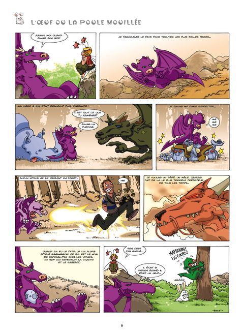 Raghnarok, sa mère et sa grand-mère sont les seuls dragons de la région. Leur territoire s'étend jusqu'aux montagnes du Nord et toute la forêt leur appartient, ils en sont les gardiens. Ils sont les protecteurs des elfes, les esprits de la forêt...Jusque-là tout va bien, on se croirait dans une bonne BD d'heroic fantasy bien classique avec ce qu'il faut de monstres et d'aventures... Eh non ! Tout faux ! "Raghnarok" est bien un petit dragon, ça c'est certain, mais complètement déjanté. Il bouffe du saucisson à l'ail, est copain avec une petite fée tendance Lara Croft, se prend des gamelles chaque fois qu'il essaie d'apprendre à voler, rêve de mettre le père Noël dans une marmite, se ramasse des tas de trucs sur le bout du museau... Et si lui, sa mère et sa grand-mère sont bien les gardiens des petits elfes, c'est avant tout dans le but de se les rôtir à la broche pour de gargantuesques festins !Vous l'aurez compris... "Raghnarok" nous conte l'histoire d'un petit dragon, mais celui-ci est loufoque, gaffeur, coquin et irrésistiblement drôle. "Boulet" remet le couvert avec un nouvel album tout aussi excellent que le premier qui avait reçu un excellent accueil.