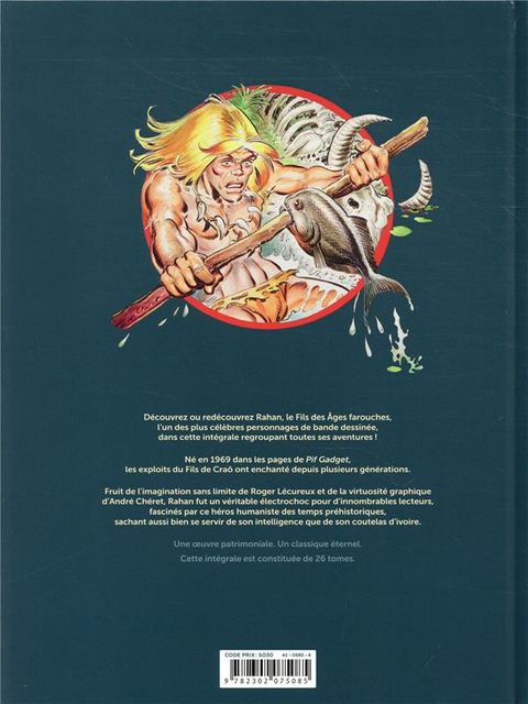 Enfi n en album, la fabuleuse saga de Rahan le fi ls des âges farouches, héros reconnu comme l'un des premiers de la bande dessinée française. La plupart des aventures de ce héros ont été publiées entre 1969 et 1989 dans la revue Pif Gadget. Le personnage, crée par André Cheret et Roger Lecureux, traverse la préhistoire de Cro- Magnon à la Fonte des glaces. Courageux, loyal, généreux, tenace et sage, il répond aux cinq vertus du collier qu'il arbore.