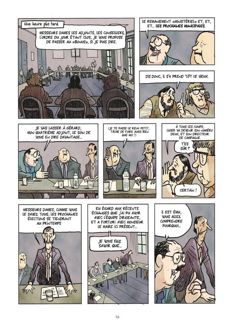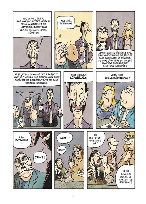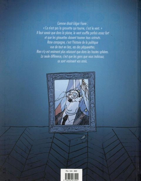 Trahisons, compromissions, retournements de veste, alliances contre nature… En somme, tout ce dont les médias nous rebattent les oreilles quand ils évoquent le paysage politique national ! Aurel est dessinateur au Monde et LE spécialiste des BD humoristicos/ politiques. Pour cet album, il a travaillé à partir du scénario de Yan Lindingre ; pas en reste sur les affaires et autres fables politiques (Chez Francisque avec Manu Larcenet chez Fluide Glacial/Dargaud; L’Affaire des Affaires avec Denis Robert et Laurent Astier chez Dargaud; Business is Business avec Julien/CDM chez Glénat). Ensemble, ils ont décidé de prendre le contre-pied des histoires attendues de politique grand format pour s’intéresser aux dimensions purement locales inspirées d’histoires vraies. Rase Campagne retrace le parcours “sans faute” mais bien navrant d’un minus de la politique. Au local ou au national, les méthodes sont les mêmes, mais pas les conséquences : en l’espèce, lorsqu’on trahit son adversaire, c’est souvent un ancien camarade de classe ou un ami de très longue date...