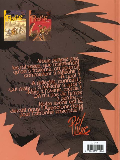 - Vous pensez pas, les ratasses, que maintenant qu'on a traversé, on pourrait commencer à réfléchir ? - Oui mais... à quoi ? - Mais à l'avenir, merde ! Notre avenir est là, devant nous ! Associons-nous pour l'affronter ensemble !!!