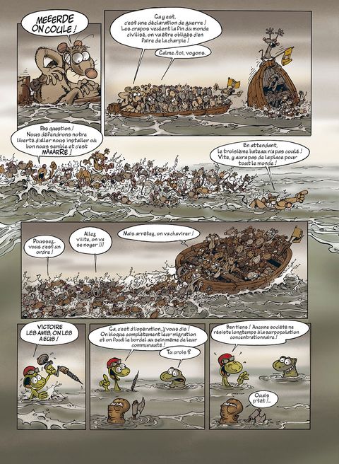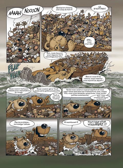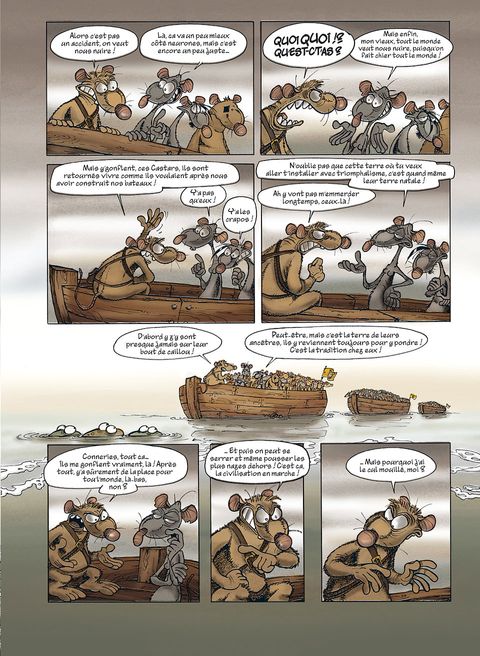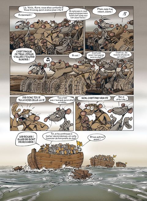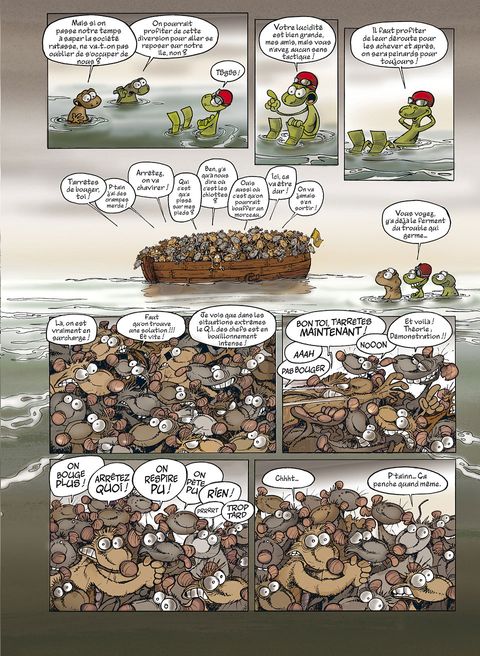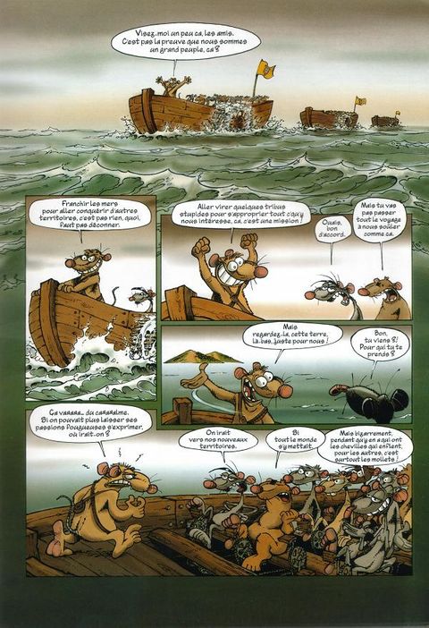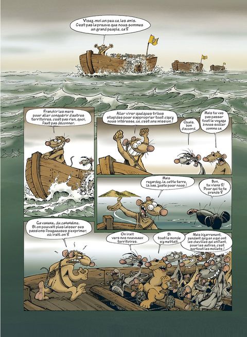 Les Rats sont toujours en quête de l'île, cet endroit rêvé qui leur permettra, espèrent-ils, de s'évader de la décharge où ils vivent. Ayant finalement réussi à se faire construire des bateaux par les Castors, toute la population rate embarque pour le Nouveau Monde. Mais ils vont - comme toujours - rencontrer toutes les tuiles imaginables. Ainsi, nos rats retrouveront sur leur chemin les Crapauds, éternels et naturels ennemis, et le bestiaire sera complété par les Castors en rébellion, puis par les Lapinos, étrange population insulaire vaguement dégénérée. Ce troisième recueil de la série Rat's, qui reprend les derniers tomes parus (7, 8 et 9), permet à Ptiluc d'entraîner sa série phare vers toujours plus de liberté et de folie. Rat's n'est certes pas à mettre entre toutes les mains, mais beaucoup découvriront une série attachante et drôle !