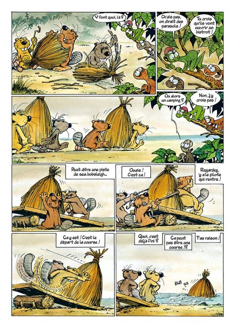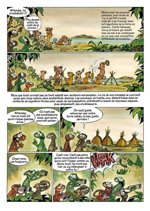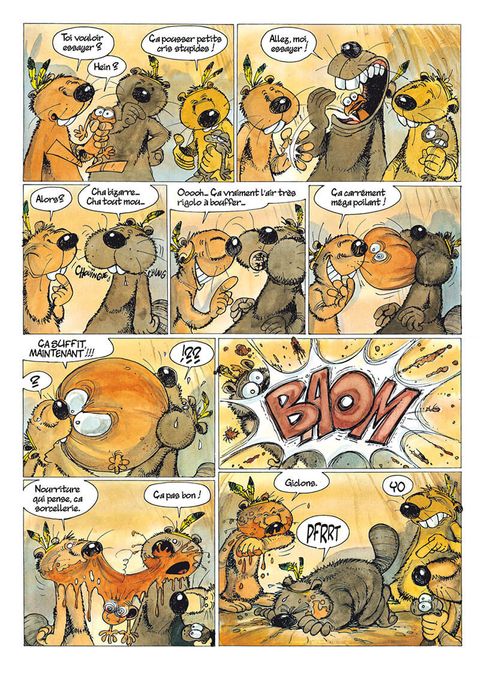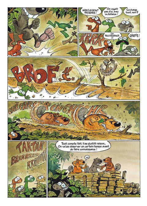 La guerre que se livrent les Rats et les Crapauds aurait pu s'installer dans un ronronnement meurtrier, les défaites des uns succédant aux victoires des autres, et vice et versa. C'est l'arrivée du peuple des Castords qui va rompre ce fragile équilibre guerrier. Les deux éternels adversaires vont devoir tout tenter pour s'adjoindre les services de ces alliés potentiels. Les premiers à franchir le pas sont les batraciens. Mais à trop vouloir privélégier l'observation discrète et les repérages souterrains, les choses se gâtent pour les Crapauds et ils finissent dans les pattes des Castords. Intrigués par ces petites créatures verdâtres, ces joyeux mammifères découvrent que leurs corps tendres et élastiques pourraient constituer une base comestible tout à fait appréciable. Il faudra l'intervention inopportune de leurs ennemis jurés les Rats pour que les Crapauds s'échappent de leur prison alimentaire. Les Rats connaîtront des débuts tout aussi difficiles jusqu'à ce qu'ils mettent au point une technique de soumissison imparable : gaver les Castords afin qu'ils n'aient plus à chasser et les obliger à travailler pour gagner leur nourriture. Et voilà inventés l'exploitation de smasses et le travail à la chaîne ! Mais que ces apprentis capitalistes prennent garde, la révolution est peut-être proche...