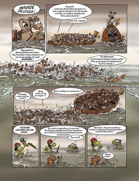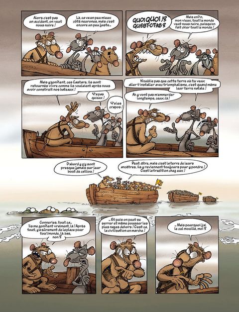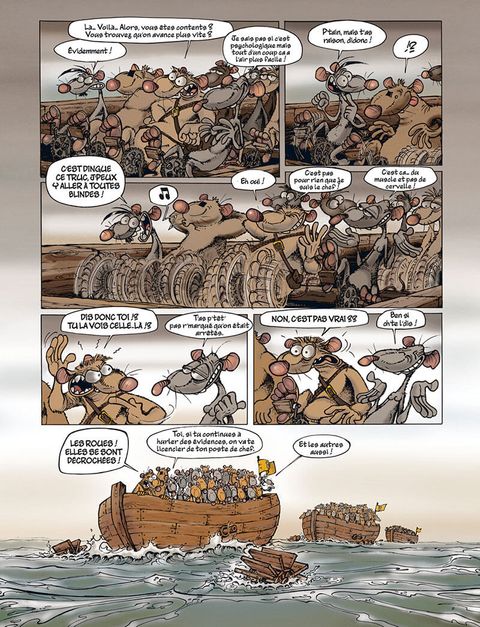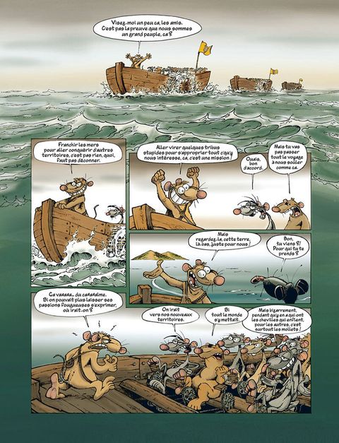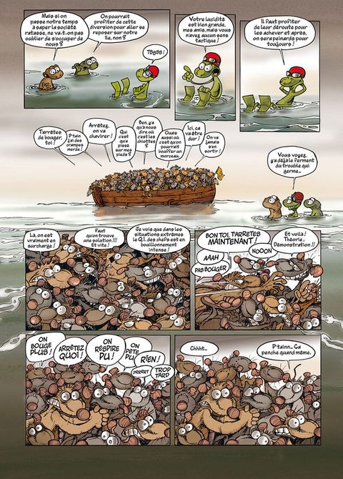 Rat's contre Crapos: ils sont ennemis héréditaires pour des raisons oubliées de tous. Ptiluc fait un portrait grinçant de cet univers animalier aux enjeux étonamment humains... Un La Fontaine vraiment rock'n'roll.