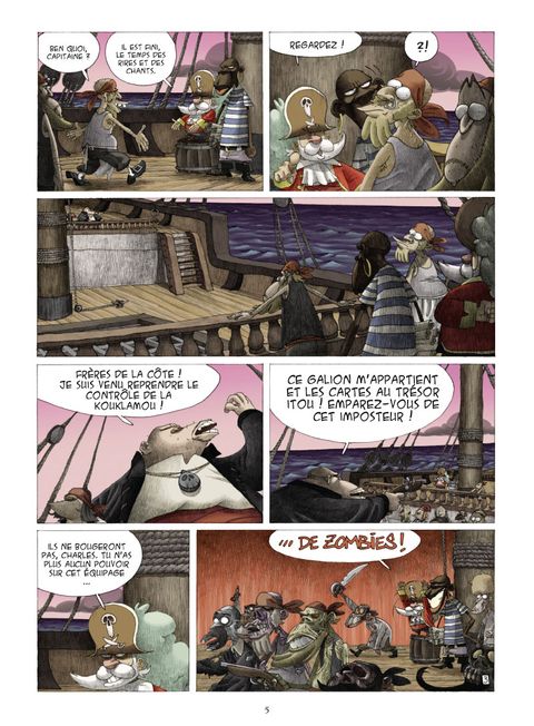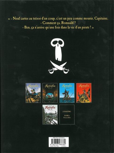 L'équipage déjanté de la Kouklamou est de retour ! Son capitaine se fiche toujours autant des trésors, et ses marins sont toujours aussi obnubilés par eux. Quant au capitaine Charles, il ne souhaite qu'une chose : récupérer son bateau, son équipage, et ses cartes au trésor avec. Jusque là, rien de nouveau. Sauf que cette fois, leur chasse au trésor les emmène sur une île mystérieuse, peuplée de zombie tout aussi tordus que nos marins.. Ratafia est une épopée piratesque hilarante, au ton inspiré de Goscinny et de Gotlib. Retrouvez chez Glénat les cinq tomes de la série dans leur collection historique, Treize Étrange.