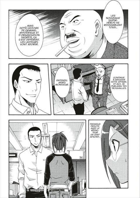 Une photo volée de Mirea et des Jacky est sur le point d'être publiée ! Shûto doit donc s'infiltrer dans les locaux de Super-héros Magazine pour la récupérer. Mais alors qu'il poursuit le journaliste responsable, un mystérieux super-héros s'interpose et l'arrête violemment !! Shûto est pressé par le temps et pense pouvoir filer facilement, mais la violence et la puissance des coups du mystérieux super-héros vont le ramener à la réalité.