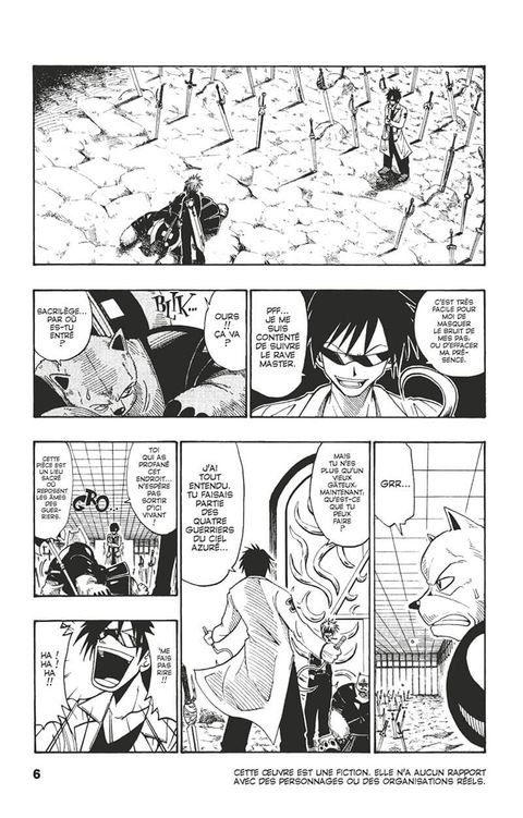 Dark Bring, une pierre sacrée magique et maléfique, se réveille après un sommeil de 50 ans, et tombe entre les mains d'une organisation qui cherche à dominer le monde : Demon Card. Jadis, une seule personne était en mesure de contrôler le pouvoir de Rave, l'autre pierre magique seule à même de contrer les pouvoirs de Dark Bring. Mais le Rave Master a disparu et son successeur n'a pas été trouvé. A moins qu'il ne s'agisse de Haru, un jeune garçon fougueux et téméraire ! Doté d'une épée gigantesque, Haru va peu à peu découvrir qu'il a été choisi pour devenir le nouveau maître de Rave. Parcourant le monde à la recherche des quatre autres fragments de la pierre, il devra également affronter les membres de Demon Card, de dangereux adversaires qu e Dark Bring a doté de pouvoirs terrifiants. ""Rave ""est le dernier grand succès du Shonen Magazine des éditions Kodansha. Dans la lignée d'un certain ""Dragon Ball"", ""Rave ""est un grand récit d'aventure, peuplé de personnages fantastiques, rythmé par de l'humour et beaucoup d'action ! Le succès est tel au Japon qu'une série télévisée est déjà diffusée sur les écrans. Déjà un hit en France !