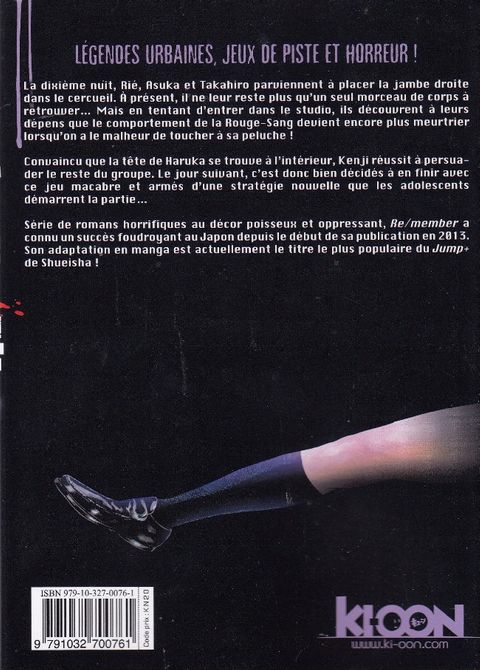 Les adolescents décident d'enquêter sur Kenji, devenu complètement incontrôlable. Après quelques recherches, ils comprennent que le lycéen est possédé par l'esprit de Taizo Yamaoka, un proche de Miko Onoyama ! Afin de changer les idées à tout le monde, Takahiro propose de sécher les cours pour se rendre au bord de la mer. Mais le répit est de courte durée : lors d'une promenade nocturne, Asuka a l'impression de sentir une présence derrière elle... Série de romans horrifiques à l'ambiance poisseuse et oppressante, Re/member a connu un succès foudroyant au Japon depuis le début de sa publication en 2013. Son adaptation en manga est actuellement la série la plus populaire du Jump+ de Shueisha !