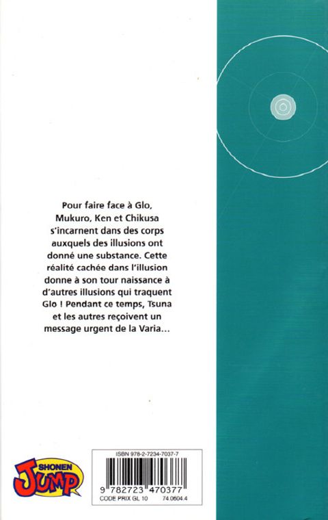 Pour faire face à Glo, Mukuro, Ken et Chikusa s'incarnent dans des corps auxquels des illusions ont donné une substance. Cette réalité cachée dans l'illusion donne à son tour naissance à d'autres illusions qui traquent Glo ! Pendant ce temps, Tsuna et les autres reçoivent un message urgent de la Varia...