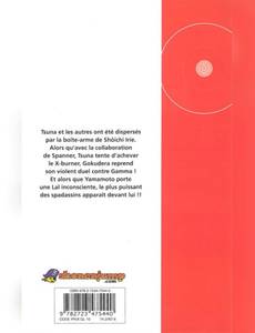 Tsuna et les autres ont été dispersés par la boîte-arme de Shôichi Irie. Alors qu'avec la collaboration de Spanner, Tsuna tente d'achever le X-burner, Gokudera reprend son violent duel contre Gamma ! Et alors que Yamamoto porte une Lal inconsciente, le plus puissant des spadassins apparaît devant lui !!