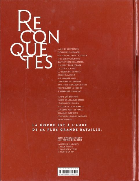 Lassés de s'entretuer, trois peuples nomades, qui semaient jadis la terreur et la destruction aux quatre vents de la steppe, s'unissent pour former l'Alliance Scythe, la "Horde des Vivants", comme ils aiment à se nommer. Mais l'arrogance et l'avidité d'un jeune monarque hittite vont pousser la "Horde" à reprendre le combat. Tandis que Babylone envoie sa meilleure scribe, l'énigmatique Thusia, au coeur de la tourmente, la guerre porte le fracas des armes jusqu'aux confins des plaines sauvages d'Asie mineure. La Horde est à l'aube de sa plus grande bataille.
