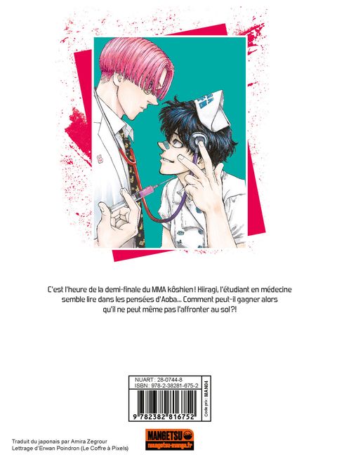 C'est l'heure de la demi-finale du MMA kôshien ! Hiiragi, l'étudiant en médecine semble lire dans les pensées d'Aoba...Comment peut-il gagner alors qu'il ne peut même pas l'affronter au sol ?!Publié dans le magazine Bic Comic des éditions Shogakukan, Red Blue est un manga de sport aux combats dynamiques, scénarisé et dessiné par Atsushi Namikiri.