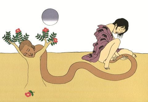 Objet d’un véritable culte, Toshio Saeki est l’inventeur d’un style unique, dans un domaine qu’il a totalement transformé, l’ero-guro (littéralement : scènes érotico-grotesques). Ce genre , dont on attribue la paternité à l’écrivain Edogawa Ranpo, remonte aux origines du dessin japonais classique et a donné de nombreuses estampes à travers les siècles. Saeki en a décliné les thèmes en les mêlant aux angoisses propres à sa génération, qui a connu les espoirs et les désillusions des années 1970. La société humaine, sa violence et ses tares, inspirent des scènes dont la cruauté provoque l’effroi ou le rire, poussant dans ses retranchements la mécanique du fan- tasme. le sado-masochisme ne recouvre ici aucune réalité, puisant dans l’onirisme une forme de poésie macabre. Stimulé par la censure qui sévit au Japon – il est prohibé de montrer les sexes – Saeki fait de l’interdit une contrainte artistique et déporte vers l’absurde et l’onirisme le plus vieux sujet du monde. Son style unique, qui rappelle à beaucoup d’européens la fameuse «ligne claire» d’Hergé et Joost Swarte, est étrange tant pour le lecteur japonais que pour le lecteur occidental, chacun trouvant dans ce trait à la simplicité parfaite une forme d’exotisme inédit. Cette perception ne s’explique que par l’originalité absolue d’un imagier extravagant, sorti tout droit de la plume d’un artiste qui a consacré sa vie à tracer au plus près «ce qui se déroule dans sa tête lorsqu’il ferme les yeux».
