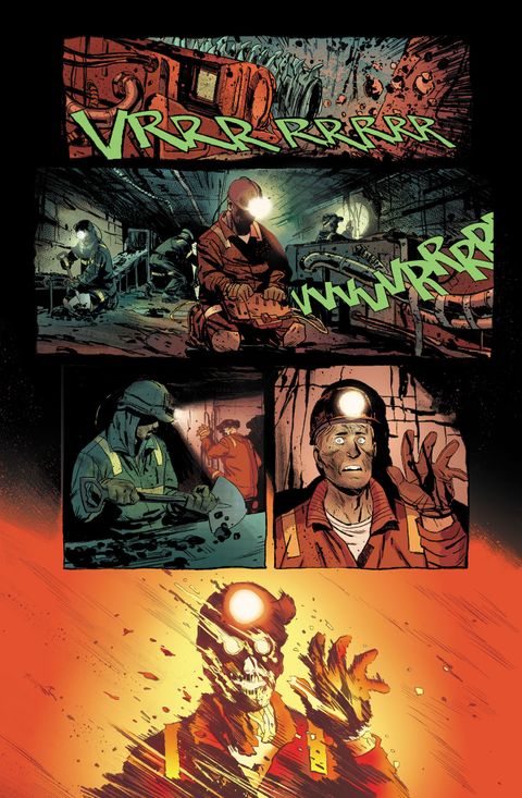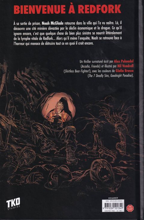 En sortant de prison, Noah retourne à Redfork, son village natal qu'il découvre ravagé par l'usage d'opioïdes. La drogue n'est pourtant pas le vrai problème de Redfork. Une présence bien plus dangereuse et surnaturelle se trouve dans les mines de charbon qui courent sous la ville. Retour chez l'intrigant éditeur TKO, qui propose des récits complets abordant tous les thèmes et tous les genres. Après la S.F. et Sentient, le western et 7 Deadly Sins ou encore le polar avec The Banks, Redfork propose cette fois un angle effrayant et surnaturel.