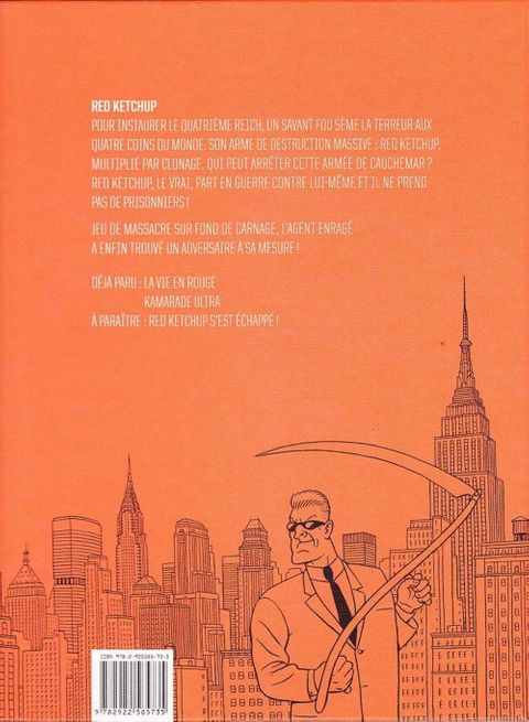 Pour instaurer le quatrième Reich, un savant fou sème la terreur aux quatre coins du monde. Son arme de destruction massive : Red Ketchup, multiplié par clonage. Qui peut arrêter cette armée de cauchemar ? Red Ketchup, le vrai, part en guerre contre lui-même et il ne prend pas de prisonniers ! Jeu de massacre sur fond de carnage, l'agent enragé a enfin trouvé un adversaire à sa mesure ! Voici le troisième tome des aventures de Red Ketchup ! L'album La vie en rouge s'est rapidement hissé dans la plupart des palmarès des libraires au Québec, preuve que le retour du plus déjanté des héros était attendu ! Régalez-vous, voici la suite de ses aventures !
