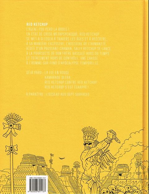 L'agent fou perd la boule! En état de crise métapsychique, Red Ketchup se met à glisser à travers les âges et à réécrire, à sa manière excessive, l'histoire de l'humanité.° Aidée d'un puissant chaman, Sally Ketchup se lance à la poursuite de son frère basculé hors du temps et totalement hors de contrôle. Une chasse à l'homme sur fond d'apocalypse temporelle. Voici enfi n le tome 5 de Red Ketchup, jamais publié en album !