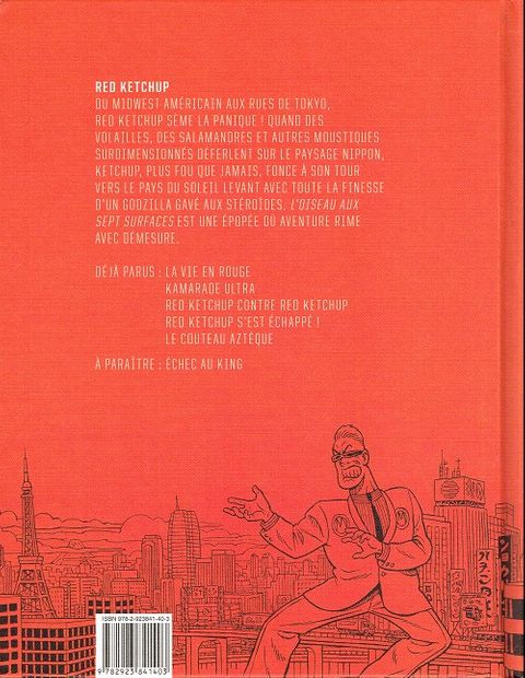 Au Japon, la dinde c'est «l'oiseau aux sept surfaces» et Red Ketchup, c'est Hiroshima en complet bleu poudre. Quand des volailles, des moustiques et autres salamandres surdimensionnés déferlent sur le paysage nippon, l'agent fou descend sur le Soleil Levant avec toute la finesse d'un Godzilla gavé aux stéroïdes. Voici le tome 6 des aventures de Red Ketchup. Cette fois-ci, notre héros sème la panique du Midwest américain aux rues de Tokyo, accumule les bourdes diplomatiques et prend très littéralement du coffre au fil d'une épopée où aventure rime avec démesure.