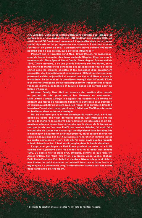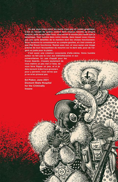 Goblin est un dérangé qui diffuse sur sa chaîne des actes de tortures innommables à l'abri dans les zones d'ombre du Dark Web. Son public le soutient à coup de Bitcoin et de commentaires salaces. Davis Fairfield, lui, enterre sa femme et sa cadette renversées par un ivrogne et se retrouve en charge de sa dernière fille, Brianna. Vous n'êtes pas prêts pour cette Amérique dépeinte par Ed Piskor...