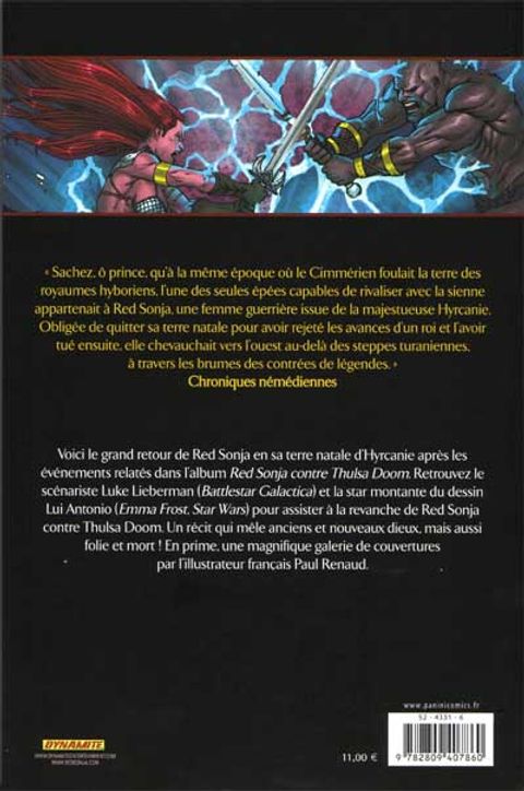 L'heure de la confrontation finale a sonné entre Red Sonja et le terrible Thulsa Doom (l'adversaire de Schwarzenegger dans le film Conan le Barbare). C'est Luke Lieberman, qui s'est déjà illustré sur une première mini-série Red Sonja VS Thulsa Doom, qui orchestre cette rencontre au sommet. Les formes généreuses de l'héroïne sont l'oeuvre d'un petit nouveau nommé Lui Antonio.